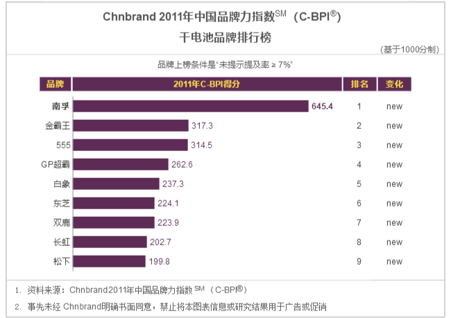 一、無可匹敵,南孚持續(xù)蟬聯(lián)中國干電池品牌力指數(shù)品牌榜第一